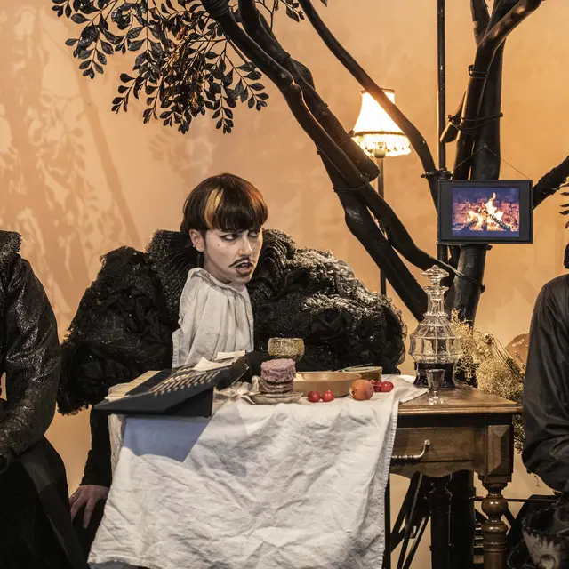 Een vrolijke muzikale fabel over verandering, de ander, de vreemdeling... Tussen clowneske effecten, renaissancekostuums, acrobatiek en actuele onderwerpen, een familiediner als alle andere, nou ja... bijna!